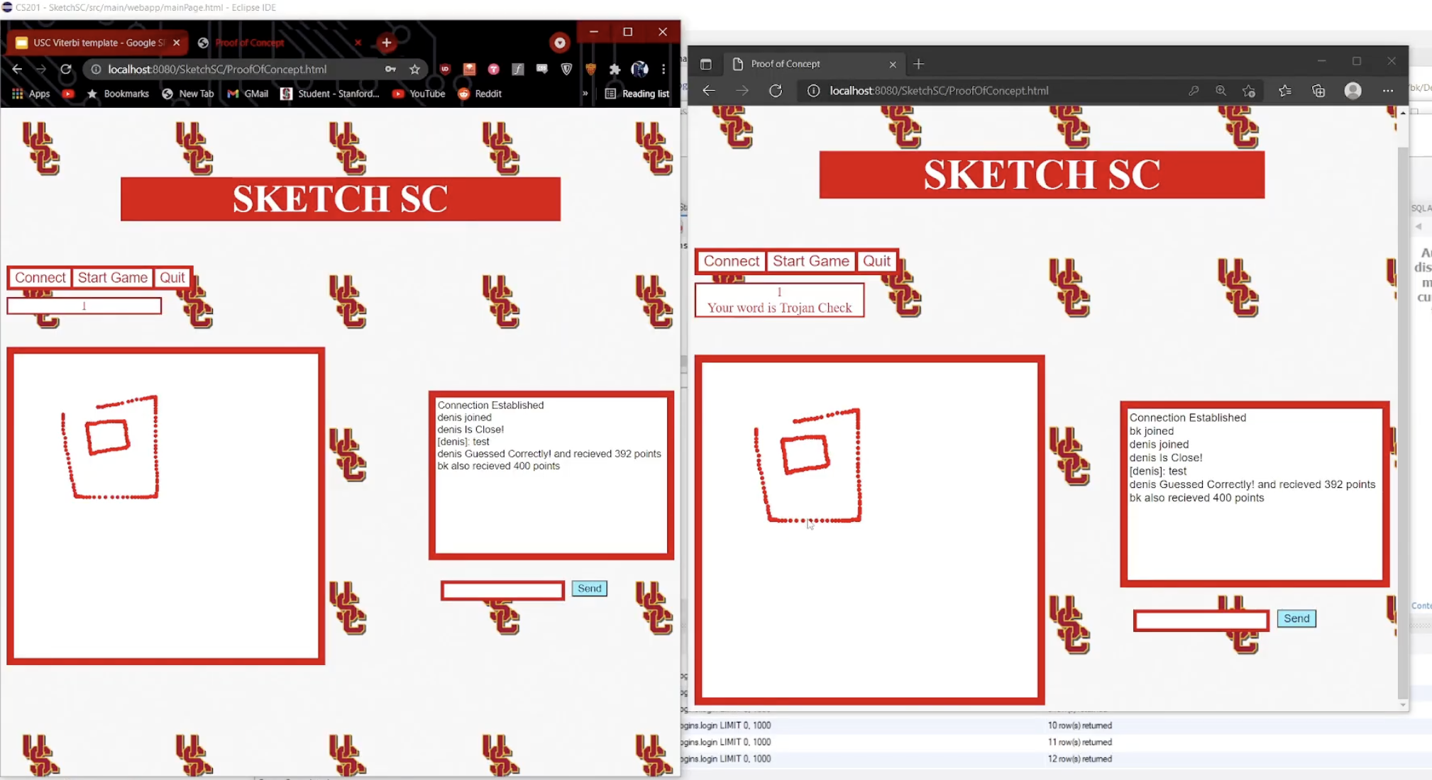 Implemented using Apache TomCat, basic html frontend with p5.js integration, and a java backend
